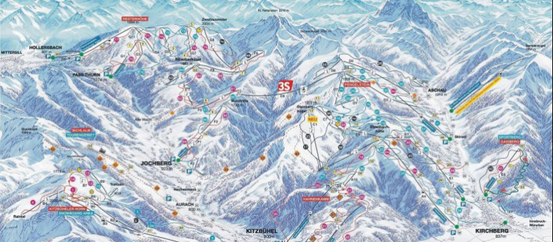 Один из самых популярных курортов Тироля с обширной зоной катания, Китцбюэль будет интересен сноубордистам (естественный природный хайфпайп) и для лыжников разного уровня, но прежде всего для любителей и экспертов. Хотя большая часть спусков относится к категории красных, некоторые из них довольно круты и узки и требуют определенного мастерства. Синих спусков мало и большинство из них следует отнести к разряду красных. Зоны катания находятся практически в самом городе, так что к нижним станциям можно пройти пешком, но чаще всего приходится пользоваться автобусами. С горы в курорт Китцбюэль ведут красные трассы – это длинные спуски с крутыми виражами среди леса, место легендарное, ибо знаменитая трасса этапа Кубка мира Streif протяженностью 3300 м расположилась как раз между ними.