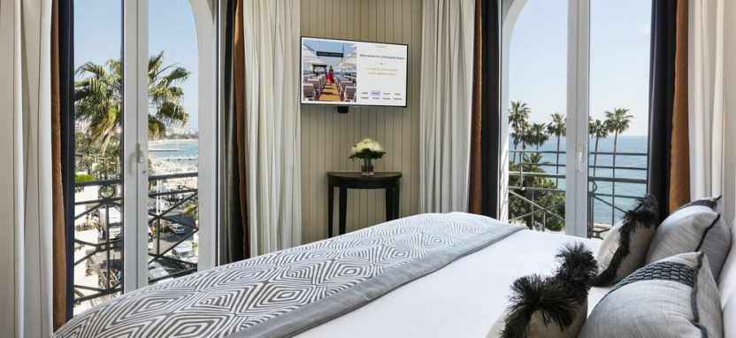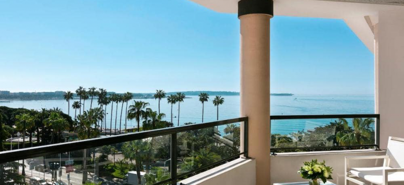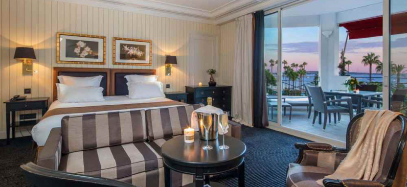 Junior Suite (40 кв. м) - вид на море, спальня с кроватью king-size, стол, ванная комната с ванной и душем, большая гостиная зона, в некоторых номерах есть терраса с видом на Канны. Детская кровать доступна по запросу. Имеются смежные номера.