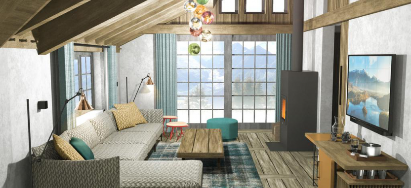 Chalet Grepon 2/4 pax (45 кв. м) - отдельное шале, названное в честь гранитного пика, нависающего над ним, современный и минималистский стиль, панорамный вид на горные вершины, основная спальня с камином, детская спальня, ванная комната с гидромассажной ванной и душевой кабиной, частная терраса.