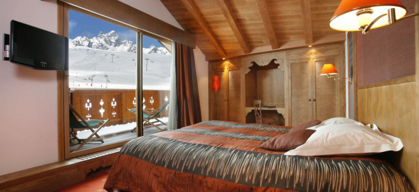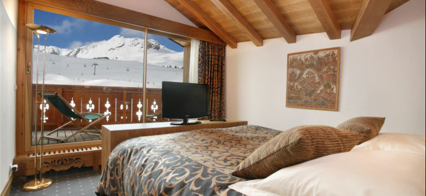 Saulire Room (29 кв. м) - номер с видом на южную сторона отеля, спальня с двухместной кроватью, ванная комната, балкон. Размещение для 2 взрослых и 1 ребенка.