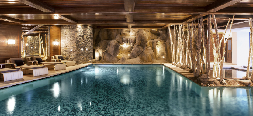 35 номеров и suites, 3 ресторана, бар, сигарная гостиная, терраса с панорамным видом, spa-центр, тренажерный зал, бутики, лыжный магазин, детский клуб, автомобильная парковка.
