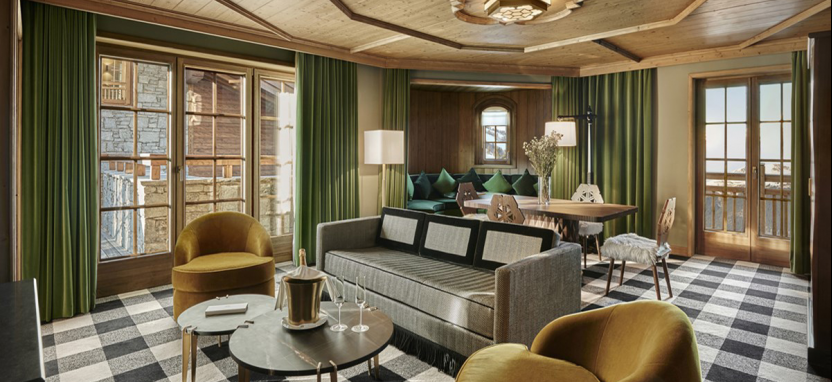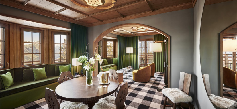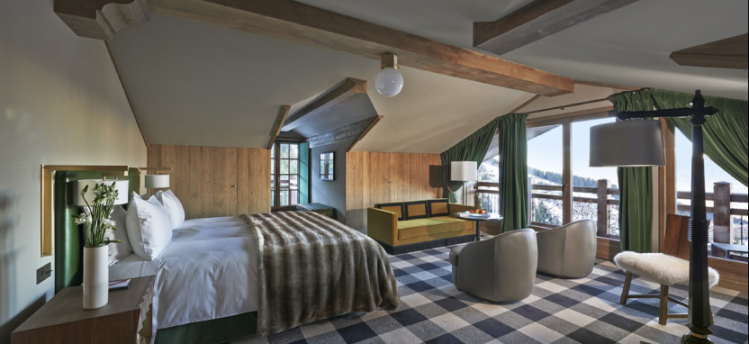 Prestige Junior Suite 3 pax (50 кв. м) - верхние этажи, гостиная зона и спальня, вид на самые красивые панорамы Куршевеля 1850. Некоторые номера данной категории имеют балконы и диван-кровать в гостиной.