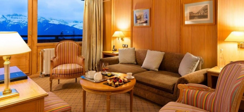 Junior Suite (40 кв. м) – номер полулюкс, спальня с кроватью king-size или двумя односпальными кроватями, гостиная, ванная комната с ванной и душевой, балкон с видом на горы. Размещение – 2 человека.