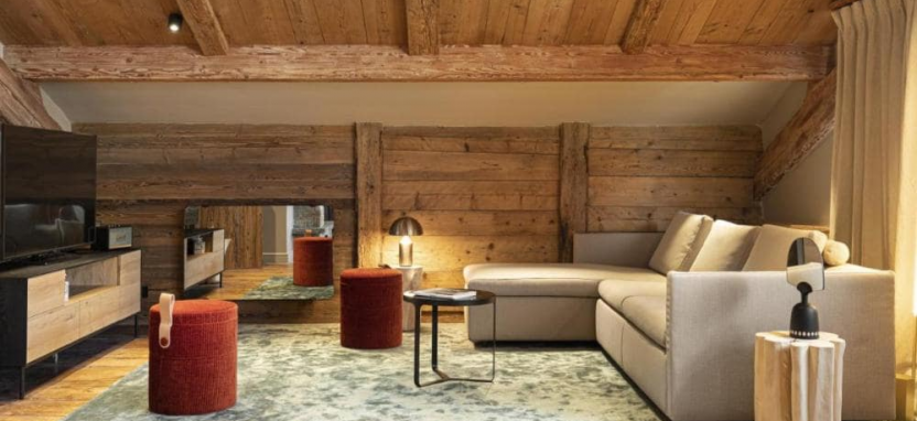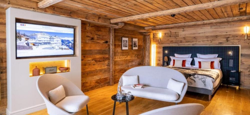 Alpes Suite (56 кв. м) - номер состоит из спальни с просторной гостиной зоной, двухэтажной кроватью для детей и ванной комнаты (ванна и душ).