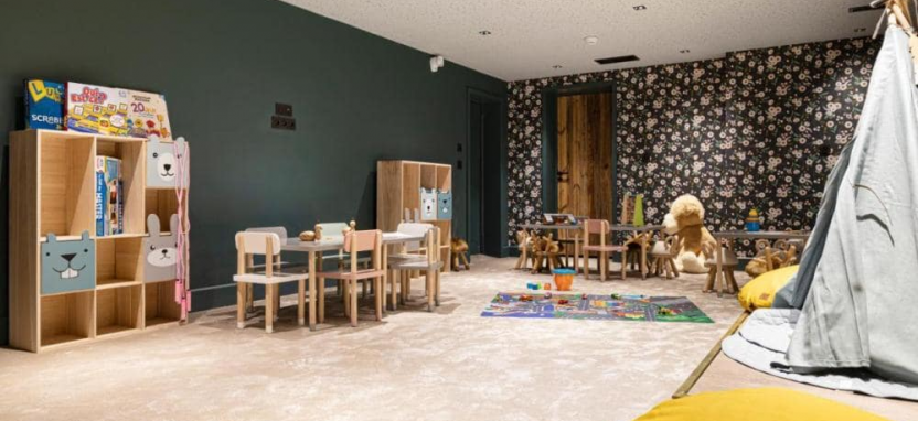 41 номер и suites, 2 ресторана, бар, салон с камином, лыжный бутик, сувенирный магазин, спа-центр, тренажерный зал, детская игровая комната.