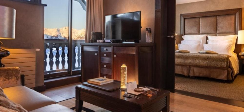Номера, сьюты и апартаменты, 2 ресторана, бар с панорамным видом, лаундж для курения, винный погреб, spa-центр, парикмахерская, тренажерный зал, детская игровая комната, гараж, комната для лыж, услуги консьержа.
