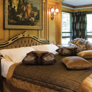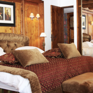 Olympic Suite 7/11 pax (250 кв. м) - олимпийский люкс с балконом на верхнем этаже отеля, на восточную сторону с видом на сосны и горные склоны, 2 гостиные, 2 столовые зоны с камином, 4 спальни, 3 джакузи, 3 ванные комнаты с душевыми кабинами.