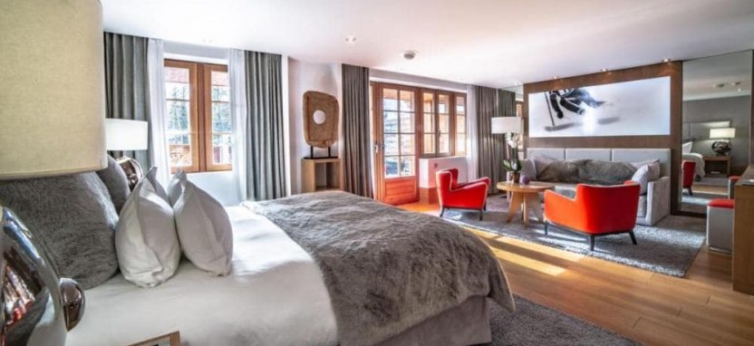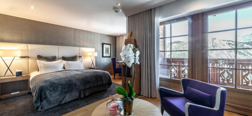 Junior Suite2 pax (49 кв. м) - спальня, гостиная, ванная комната, терраса или балкон с видом на горы и лыжные склоны, восточная сторона отеля.