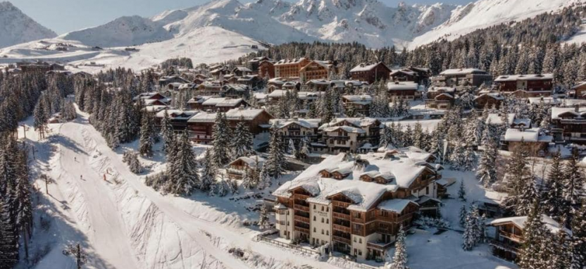 В самом центре знаменитого курорта Куршевель 1850, у горнолыжных трасс на спуске Коспийо.