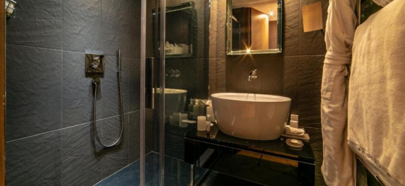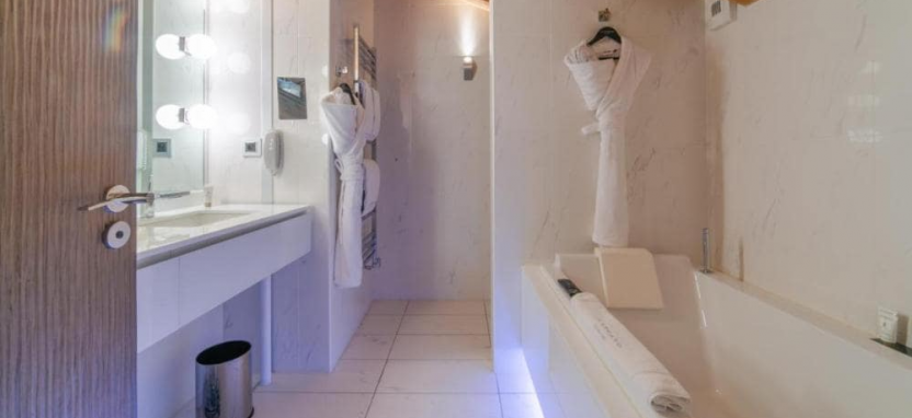 Deluxe Suite (50-58 кв. м) - гостиная зона с софой, спальня, ванная комната, терраса или балкон с видом на горы и лыжные склоны, северная или восточная сторона отеля. Ванная комната. Отдельный туалет.