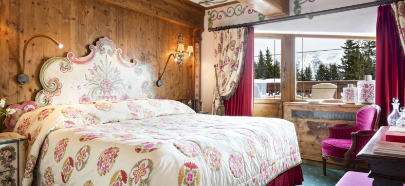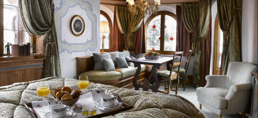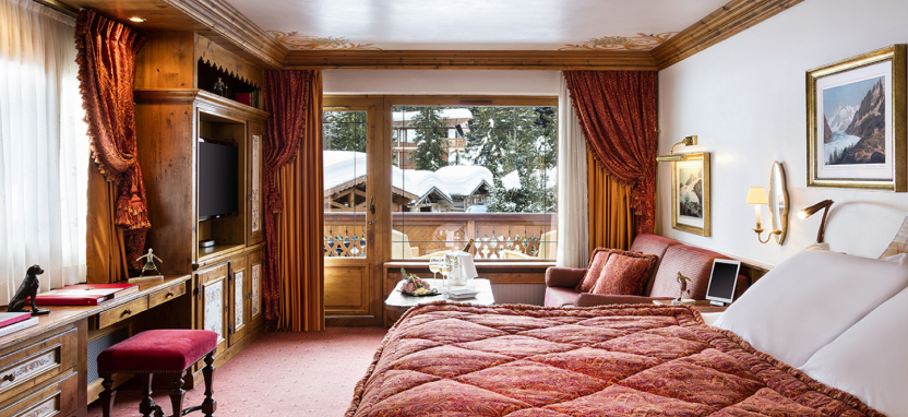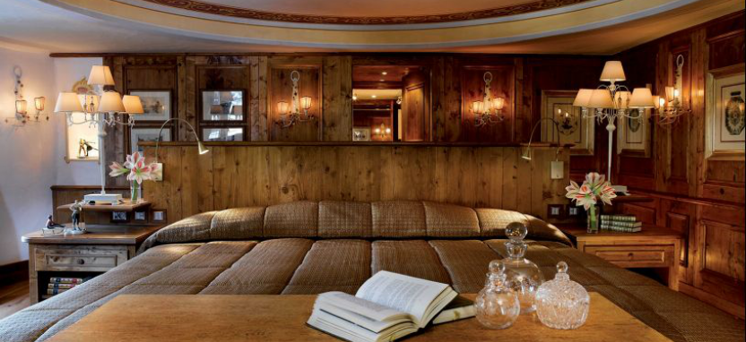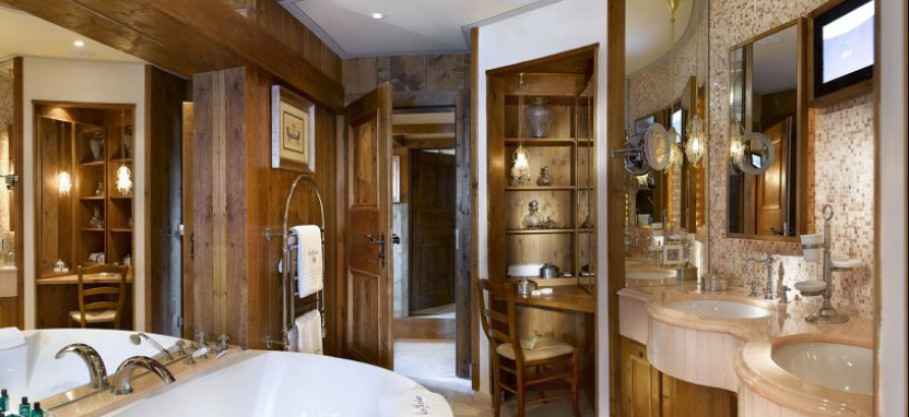 Suite Lys Martagon (140 кв. м) - трехкомнатный люкс, юго-западная сторона, панорамный вид на горы, просторная гостиная с камином, 3 спальни с гардеробными, в основной спальне есть ванная комната с полукруглой ванной + хаммам + обширный итальянский душ.