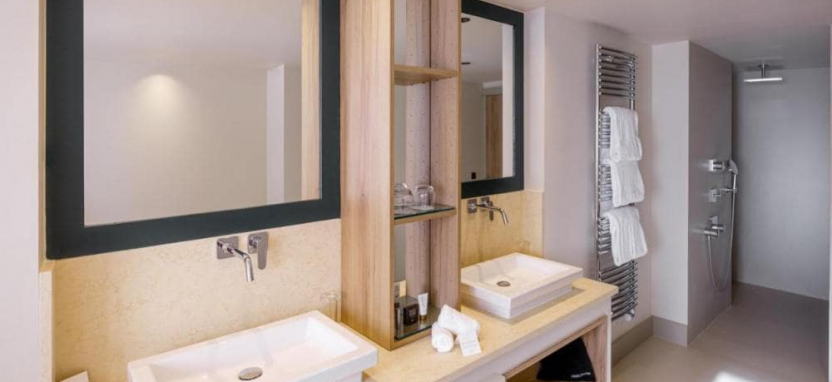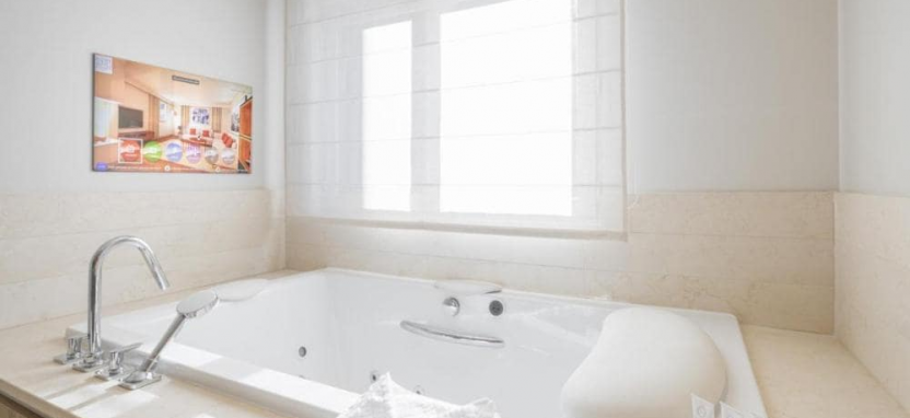 Elegant Suite (55 кв. м) - сьюты, вид на курорт. В зависимости от сьюта в отделке используются разнообразные цветовые гаммы: золотистые, коричневые, красные и слоновая кость, гостиная зона, спальня, гардеробная, ванная комната с душем + джакузи.