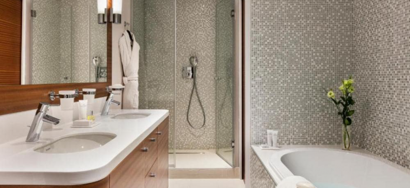 Prestige Junior Suite (46 кв. м) - гостиная, спальня, гардеробная зона, ванная комната с ванной и душевой кабиной.
