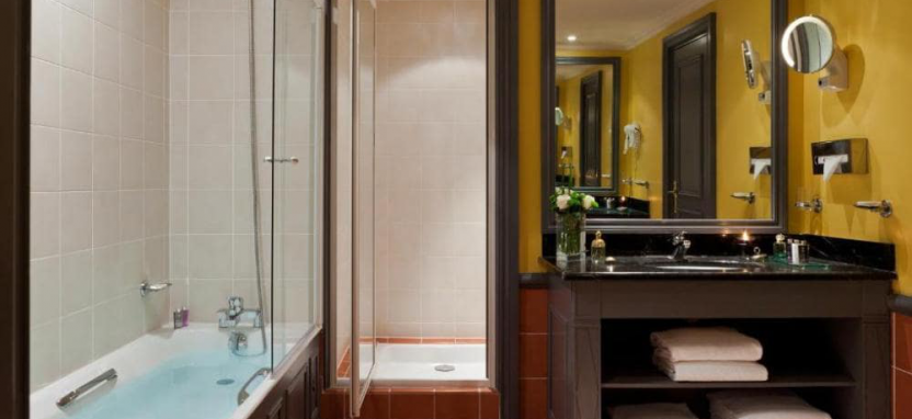 Deluxe Room (30 кв. м) – спальня, ванная комната с ванной и душем.