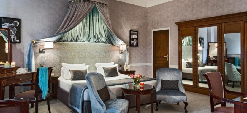 Junior Suite (45 кв. м) – спальня с гостиной зоной, гардеробная, ванная комната с ванной и душем. Вид на город.