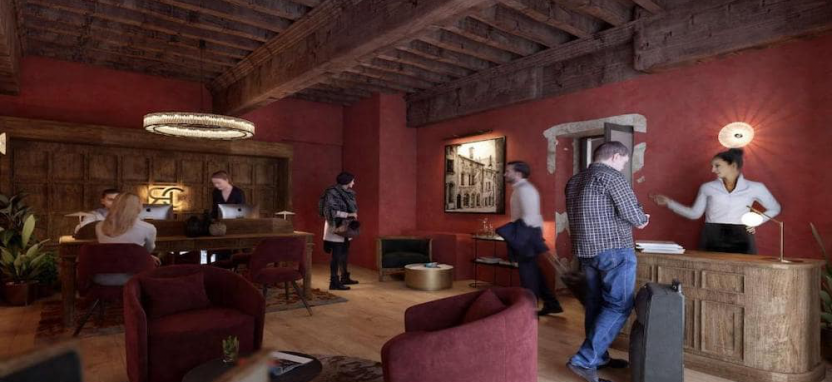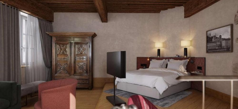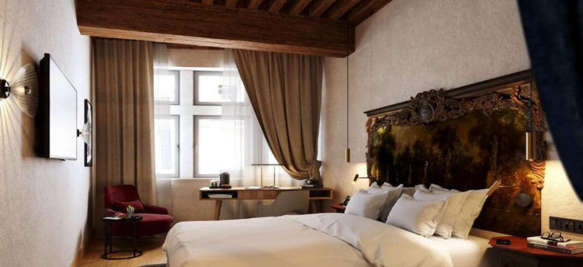 Фасад, комнаты и внутренние помещения отеля выполнены в стиле позднего средневековья, что создает неповторимый антураж и историческую атмосферу. Картину дополняют потрясающие виды из номеров на улицы и дома эпохи Ренессанса.