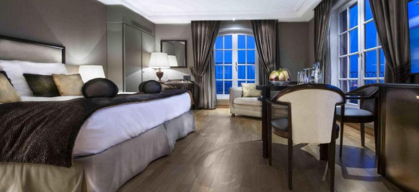 Junior Suite (45 кв. м) – вид на внутренний двор или город, спальня с кроватью king-size, гостиная, стол, ванная комната с душем. В некоторых номерах есть балкон с видом на сад или частная сауна.