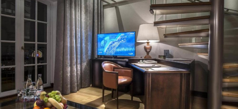 Medici Suite (83 кв. м) – вид на город, спальня с кроватью king-size, гостиная, стол, рабочий кабинет, гардеробная, ванная комната с душем.