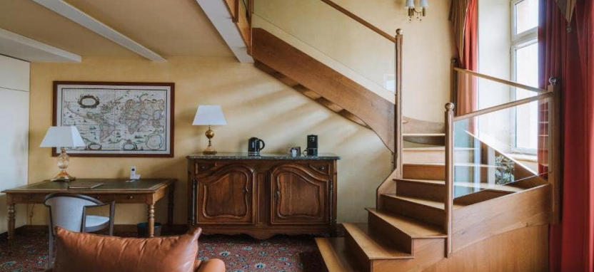 Suite (60 кв. м) – вид на внутренний двор или город, спальня с кроватью king-size, гостиная, стол, ванная комната с душем. В некоторых номерах есть балкон с видом на сад или частная сауна.