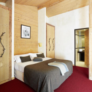 Suite Megeve 4 pax (33-35 кв. м) - некоторые сюиты двухуровневые, вид на курорт Межев и долину, гостиная зона, маленькая кухня, спальня, ванная комната с ванной + в большинстве номеров отдельный туалет, практически во всех номерах есть балкон.