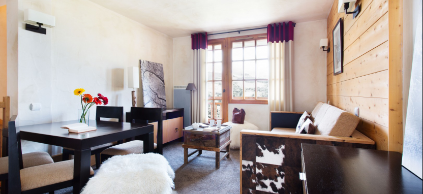 Very Large Suite 8 pax (90 кв. м) - просторные сюиты, вид на горнолыжные склоны и курорт Межев, просторная гостиная с выдвижным диваном, полностью оборудованная кухня, 2-3 просторные спальни, 2 ванные комнаты с ванной и отдельным туалетом, балкон.