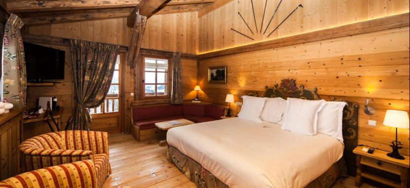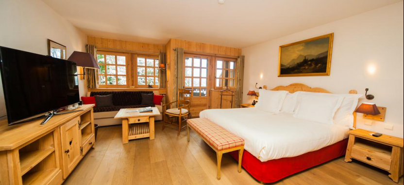 Suite Prestige 6 pax (около 80 кв. м) - просторные сюиты находятся в главном корпусе, Chalet d'Alice и Chalet d'Noemie, вид на долину и бассейн, гостиная с камином, столовая, гардеробная, 2 спальни, 2 ванные комнаты, балкон.
