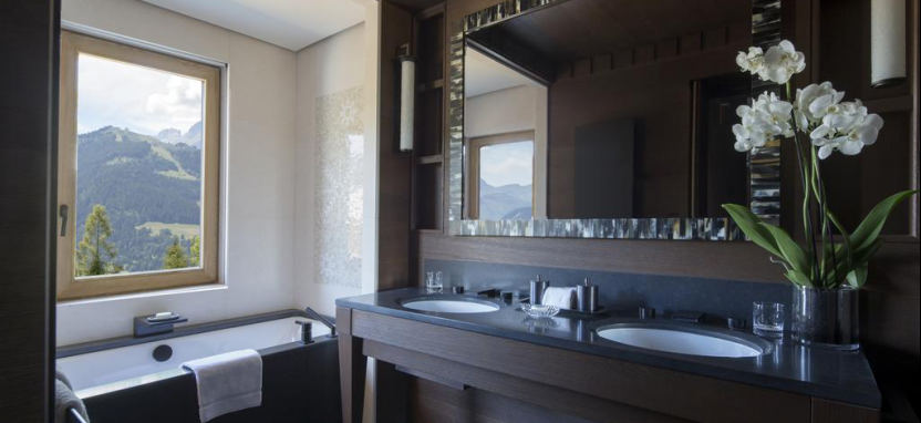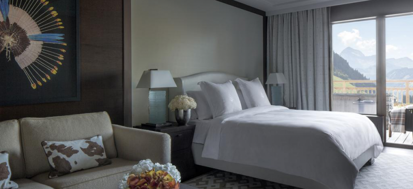 Mont d'Arbois Suite 3/4 pax (141 кв. м) - эксклюзивный сюит, 5 этаж, вид на горы и долину, большая гардеробная, просторная гостиная с камином, полностью оборудованная мини-кухня, спальня, ванная комната, отделанная мрамором, с ванной и душевой кабиной, дополнительная гостевая ванная комната с душевой кабиной, 2 балкона.