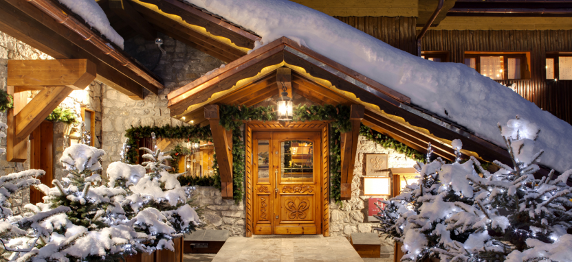 В центре горнолыжного курорта Мерибель, рядом с подъемниками.