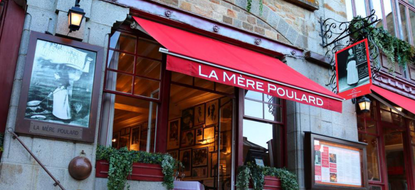 Отель La Mère Poulard расположен прямо у подножия легендарного аббатства Мон-Сен-Мишель, привлекая уютной атмосферой старинного города-крепости. Его интерьер выполнен в традиционном нормандском стиле, сочетающем деревянные балки потолков и каменные стены, создавая ощущение домашнего тепла и комфорта.