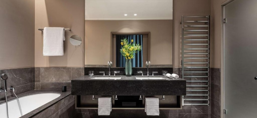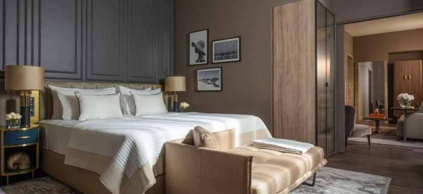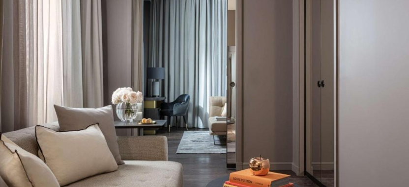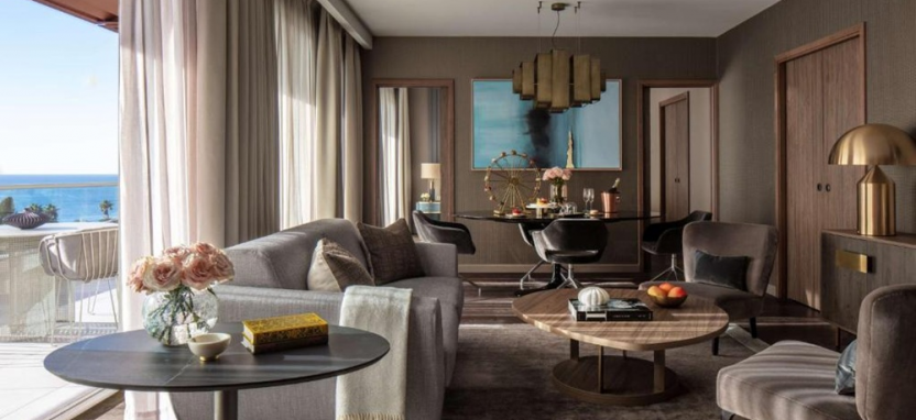Albert Ist Suite Panoramic Sea View (109 кв. м) – самый просторный и роскошный люкс с панорамным видом на море, кровать king-size, гардеробная комната, большая гостиная, столовая, холодильник для вина, ванная комната с двойной раковиной, ванной и ливневым душем, большая частная терраса с зоной отдыха и обеденным столом. Для гостей данной категории номеров предоставляется бесплатный трансфер. Размещение – 2 взрослых с 2 детьми. Услуги пляжа включены в стоимость проживания.