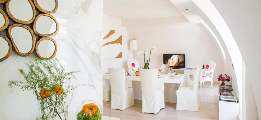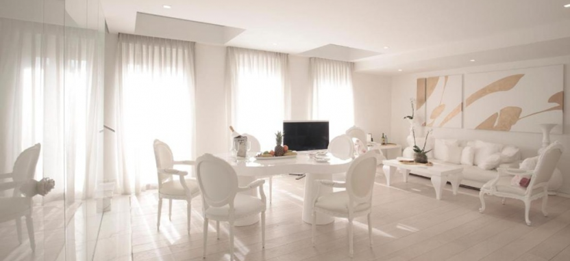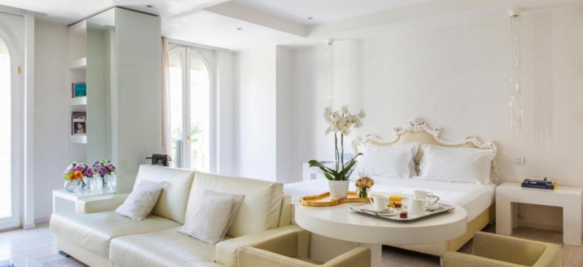 Junior Suite (49 кв. м) – полулюкс с изысканным современным декором, каждый из номеров этой категории уникален и отличается от остальных особой и утонченной отделкой, спальня с двуспальной кроватью, гостиная зона с просторным диваном, обеденный стол, ванная комната открытой планировки с открытым итальянским душем, балкон. Размещение – 2 человека.