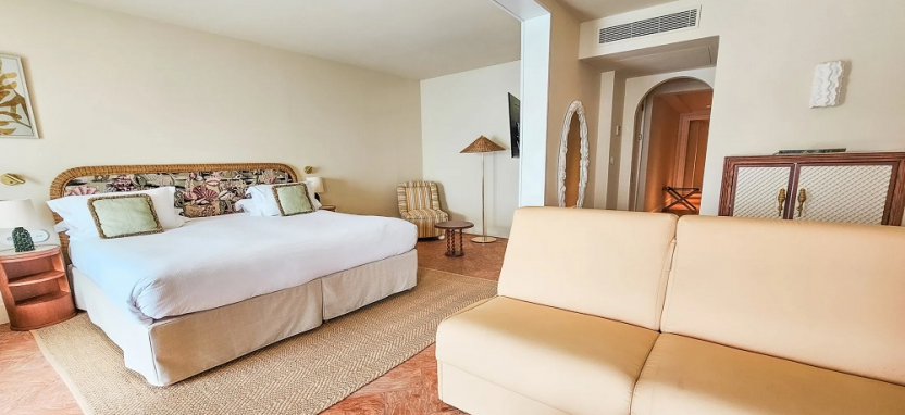 Junior Suite with Sea View (33-40 кв. м) – спокойные и элегантные люксы с уникальным декором, оформленные в приятном и современном стиле. Прекрасный вид на море, спальня с двуспальной или двумя односпальными кроватями, гостиная зона с диваном, ванная комната, балкон или терраса. Подходит для людей с ограниченными возможностями. Размещение -