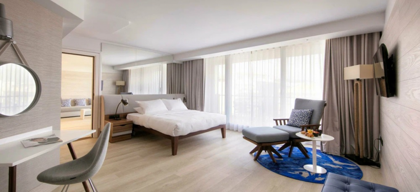Suite with Terrace Bay View (45 кв. м) – люкс с видом на залив. Спальня с кроватью queen-size, отдельная гостиная, ванная комната с душем и ванной, терраса. Дополнительная детская кровать предоставляется по запросу. Размещение – 4 взрослых или 2 взрослых с 2 детьми (до 12 лет).