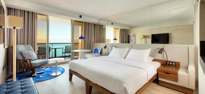 Premium Room Sea View (27 кв. м) – номер Премиум с видом на море. Спальня с кроватью king-size или queen-size, или двумя отдельными кроватями, ванная комната с душем и ванной, балкон. Размещение – 2 человека.