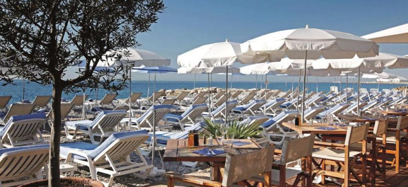 Прекрасный частный пляж Régence, оборудованный зонтиками и шезлонгами (за дополнительную плату).