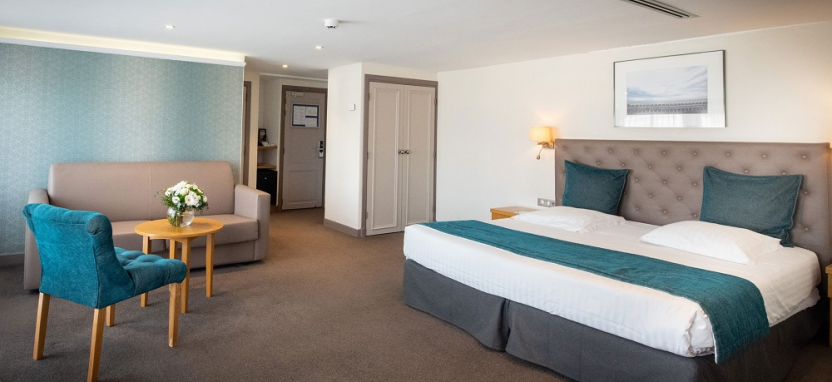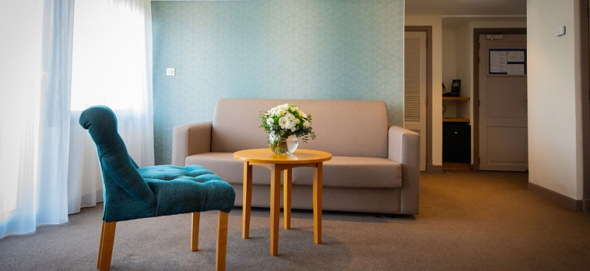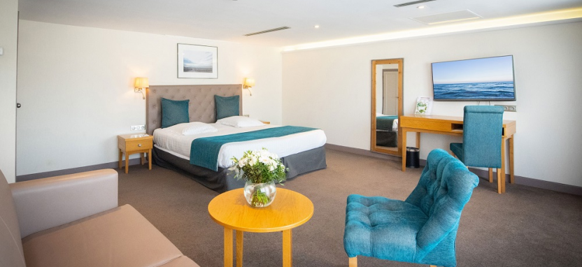 Junior Suite (35 кв. м) – номер полулюкс. Спальня с кроватью king-size или двумя односпальными кроватями, зона отдыха с диван-кроватью, письменный стол, ванная комната гидромассажной ванной и душем. Размещение – 2 взрослых с 2 детьми (до 12 лет).