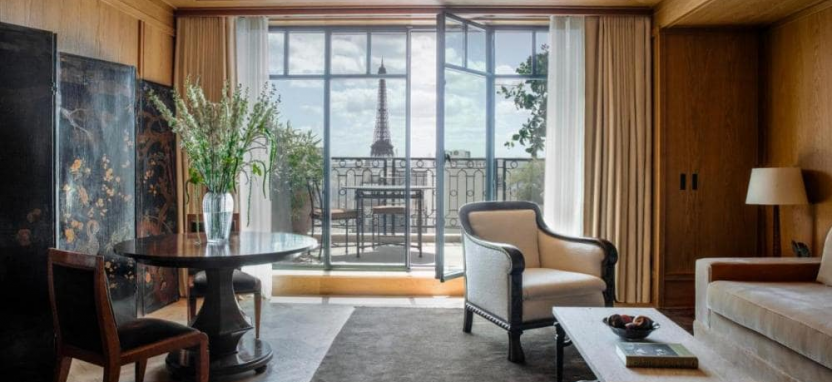 Eiffel Tower View Suite (46-52 кв. м) - расположенные на предпоследнем этаже, сьюты предлагает вид на улицу Байрона, крыши Парижа и Эйфелеву Башню (в двух сьютах есть небольшой балкон). Спальня с кроватью king-bed или 2 одноместными кроватями, гостиная комната с софой для дополнительного гостя.