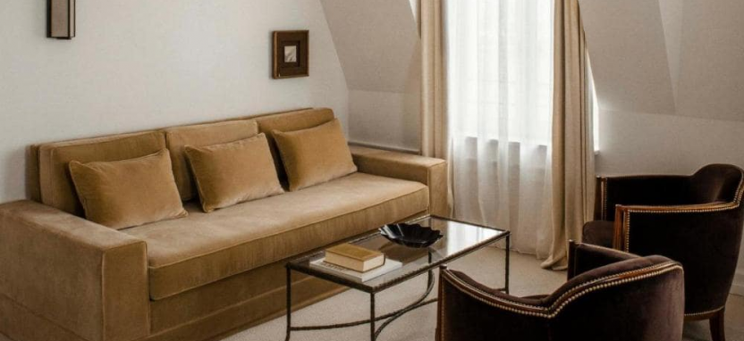 Junior Suite (32-40 кв. м) - номера с кроватью king-bed или 2 одноместными кроватями дополнены гостиной зоной с софой и позволяют разместить до 3 гостей. Вид на улицы Бальзак или Лорда Байрона или во внутренний дворик. Из некоторых номеров вид на крыши Парижа и частично на Эйфелеву башню. Возможно объединение с номером Boudoir.