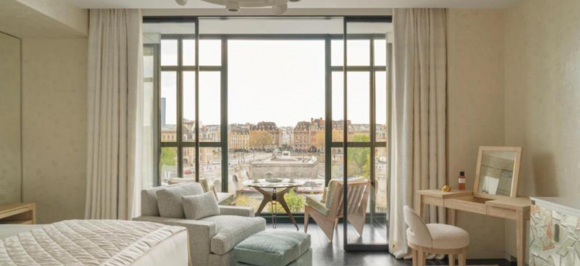 Siene Suite (105 кв. м) – просторный сьют с окнами от пола до потолка и потрясающими видами на панораму Парижа. Спальня, гардеробная, ванная комната, отдельная гостиная с обеденной зоной и зоной отдыха. Возможно объединение с Deluxe Room.