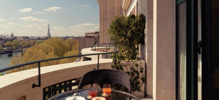 Eiffel Suite (100 кв. м) – сьют состоит из спальни, гардеробной, ванной комнаты. Изюминка номера – отдельная гостиная с зонами для отдыха и обеда и великолепной террасой с видом на панораму Парижа и Эйфелеву башню. Можно объединять с Balcony Deluxe Room.