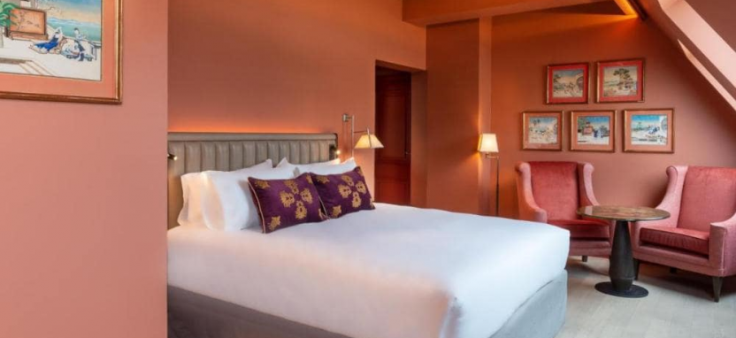 Privilege Room (29 кв. м) - номера с мансардным потолком оформлены в красных тонах и напоминают о богемном Париже.