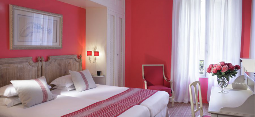 Rosalie: номер с двумя отдельными кроватями, выполненный в романтическом стиле, в кремовых и розовых тонах.