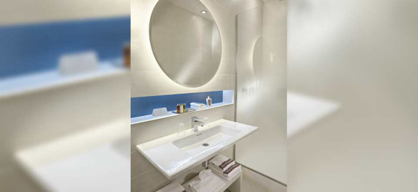 Les Preludes: номер оформлен в светлых тонах. Театральную атмосферу придают ему пурпурные велюровые портьеры на окнах, изголовье кровати украшает белоснежный балдахин из шелка и льна. Ванная комната оформлена в серовато белых тонах.