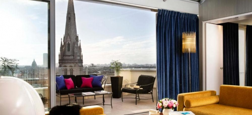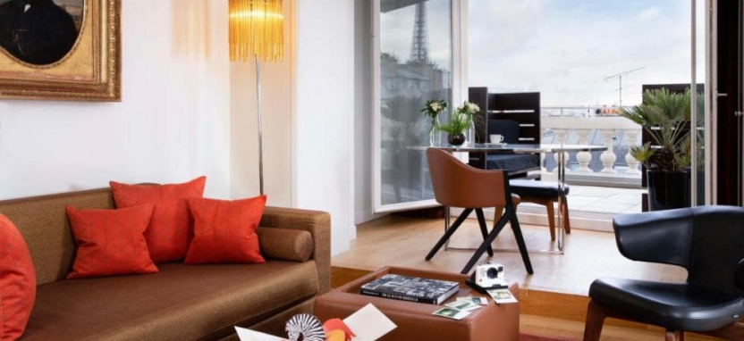 Eiffel Terrace Suite (55 кв. м) - сьют для 2 гостей. Панорамная терраса 25 кв. м, откуда видно Эйфелеву башню, Американскую церковь и Сакре Кёр.