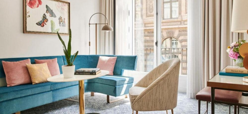 Family Corner Suite (70 кв. м) - сьют состоит из трех соединенных номеров (два с кроватью king-size и один с двумя одноместными кроватями). Из каждой комнаты вид на Комеди Франсе или Палас Роял.