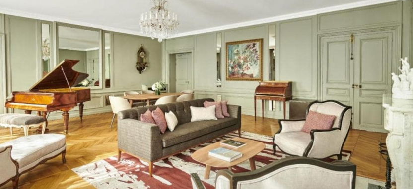 Suite Marlene Dietrich (85 кв. м) - сьют с уникальной историей. Марлен Дитрих жила в нем три года в конце 1930-х и в просторной гостиной до сих пор можно видеть ее рояль. Возможно объединение номера с Deluxe Room или с Suite Monsieur.
