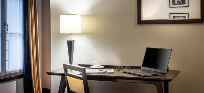 В каждом номере: ванная комната, фен, халаты, тапочки, косметические принадлежности, телевизор с плоским экраном, чайник, кофе-машина Malongo, сейф, телефон, Wi-Fi. Номера имеют вид на улицу или на внутренний дворик отеля.