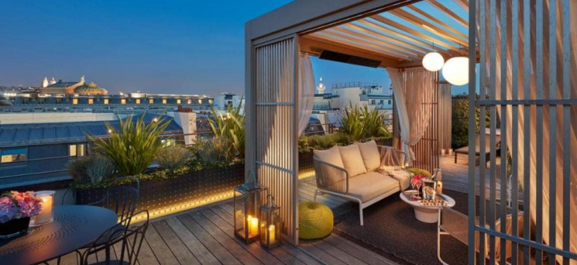 Oriental Penthouse Suite (162 кв. м) - фешенебельный двухуровневый номер включает прихожую, украшенную работой известного художника Тьерри Биша, гостиную, столовую, кабинет, спальню (на втором этаже) с кроватью king-size с гардеробной и роскошной ванной комнатой с ванной и паровой кабиной, просторную террасу с обеденной зоной, садом и захватывающими видами на Париж и Гранд Опера. Возможно объединение номеров.