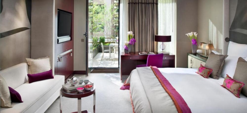 Интерьеры номеров сочетают изысканный современный французский дизайн и элементы восточного декора, из номеров открываются чудесные виды на улицу Сент-Оноре, живописный сад и внутренний дворик отеля.