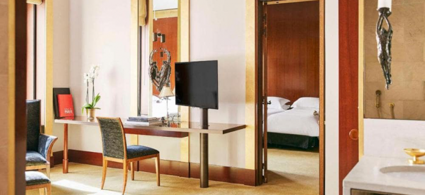 Presidential Suite (210 кв. м) - двухуровневый номер. Прихожая, гостиная с роялем, столовая зона, мини-кухня, спальня с кроватью queen-size, гардеробная, ванная комната с гидромассажной ванной и душем с функцией парной, два камина, комната для массажа и для тренировок. Два балкона с видом на Эйфелеву башню, Вандомскую колонну, собор Нотр Дамм.